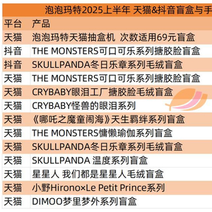 THE MONSTERS可口可乐系列搪胶脸盲盒、SKULLPANDA冬日乐章系列毛绒盲盒、CRYBABY眼泪工厂搪胶脸毛绒盲盒、CRYBABY怪兽的眼泪系列、《哪吒之魔童闹海》天生羁绊系列、 THE MONSTERS慵懒瑜伽系列、SKULLPANDA冬日乐章系列毛绒盲盒、 SKULLPANDA 温度系列、LABUBU慵懒瑜伽系列、星星人 我们都是星星人毛绒盲盒、小野Hirono×Le Petit Prince系列、DIMOO梦里梦外系列。