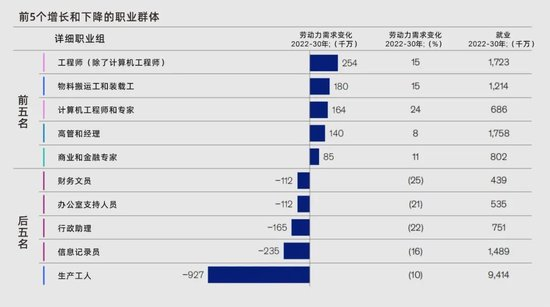 首当其冲的是批发零售行业和制造业,到2030年预计分别有280万和210万人需要重新择业。