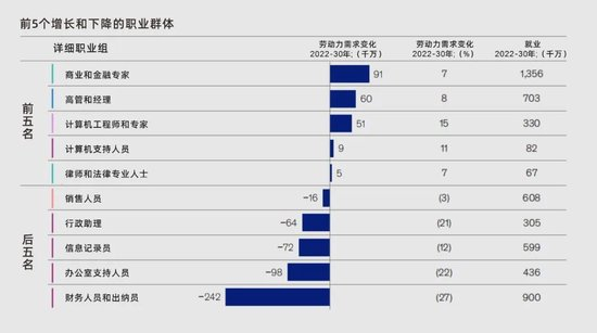而医疗保健行业尽管预计到2030年,将迎来最大的劳动力需求增长,增加约370万个岗位,但增长主要由健康助手和医疗专业人员的需求推动。