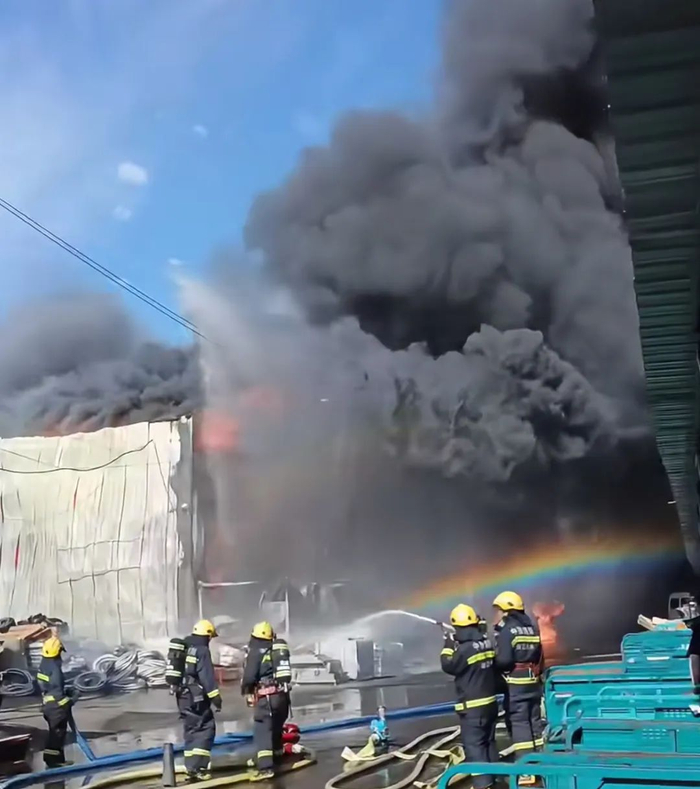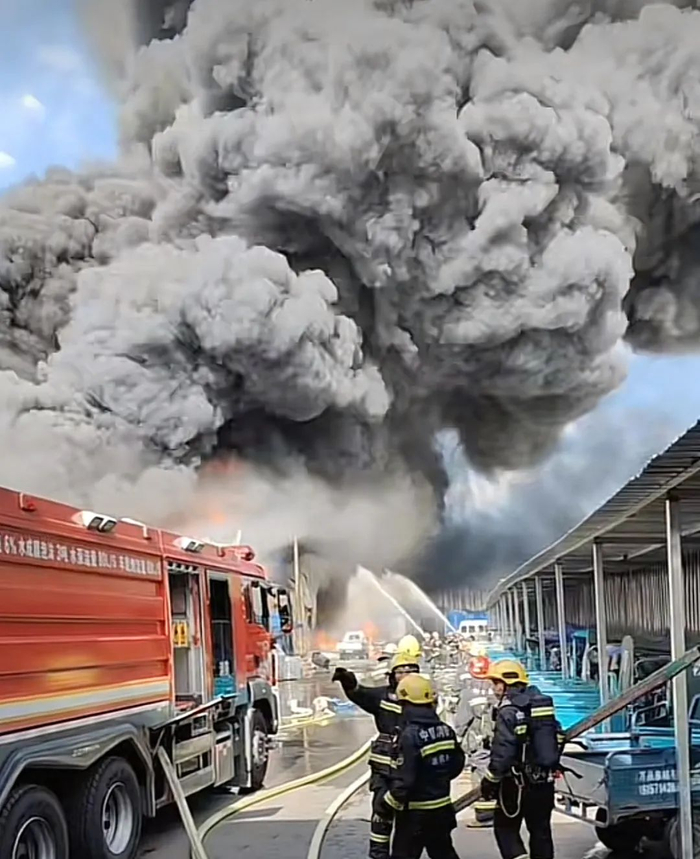 记者从网友发布的视频可以看到,现场黑烟滚滚,消防部门一直在现场灭火。