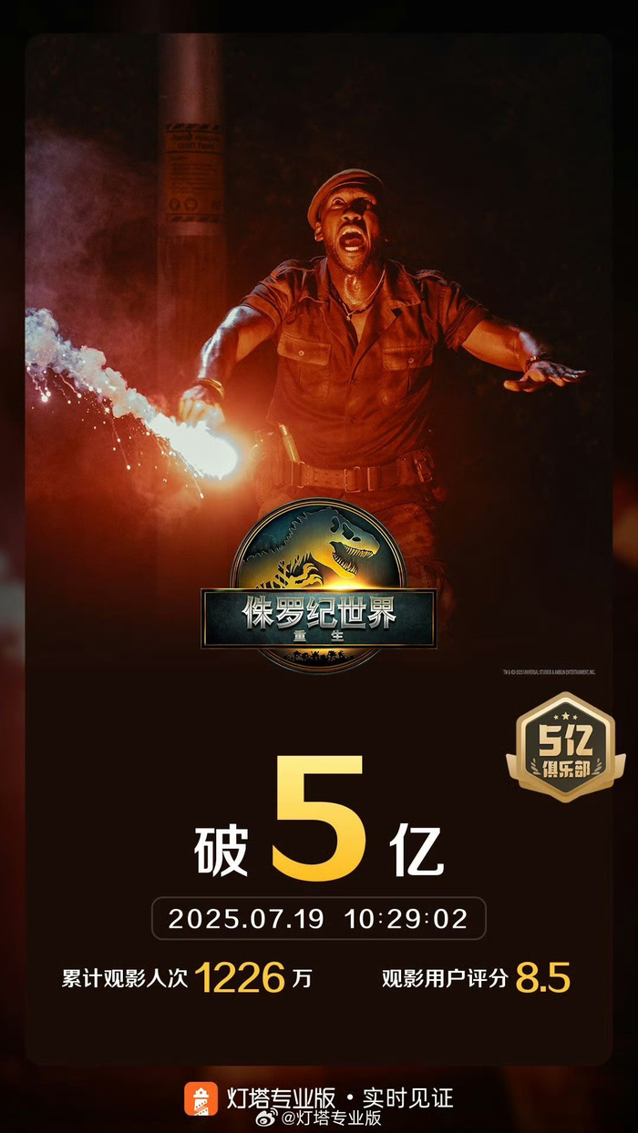 据灯塔专业版,《侏罗纪世界:重生》上映第18天累计票房突破5亿,也是今年春节档后首部破5亿的影片。