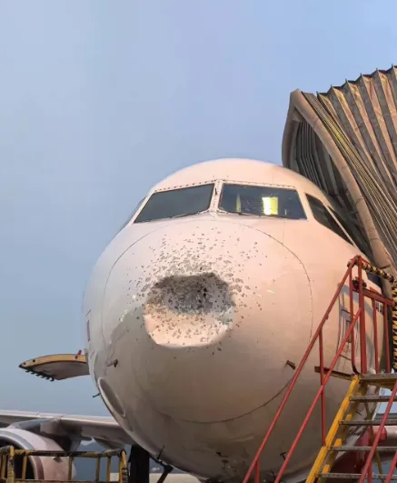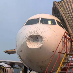 航班遭冰雹袭击,前挡风玻璃破裂,机身被砸出大坑!乘客:感觉捡回一条命!亚航发布情况说明