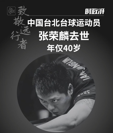据媒体报道,中国台北台球运动员、绰号“火云邪神”的张荣麟,于7月14日在印度尼西亚的一家酒店因中风去世,年仅40岁。