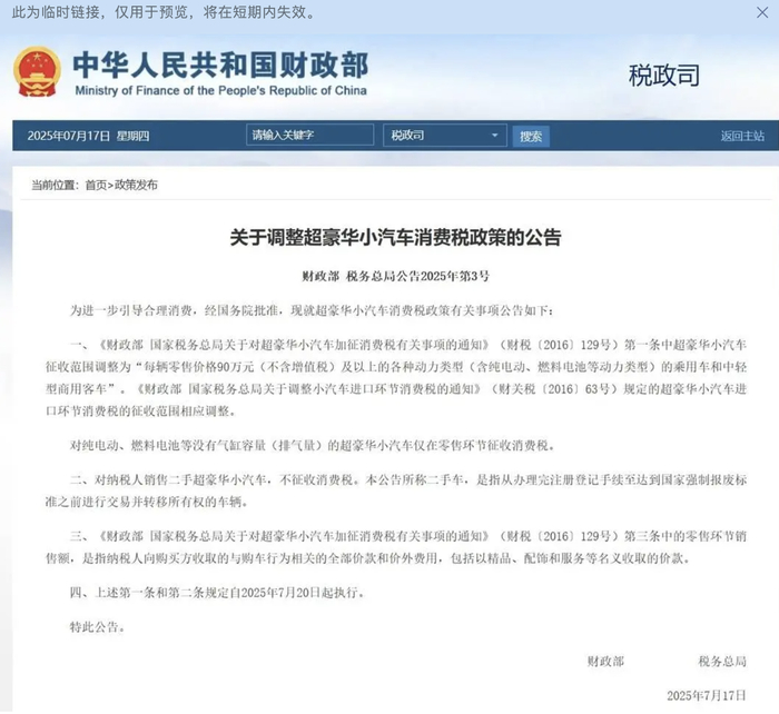 7月17日,财政部、税务总局发布《关于调整超豪华小汽车消费税政策的公告》,哪些超豪车将受到影响?终端市场又在如何应对?