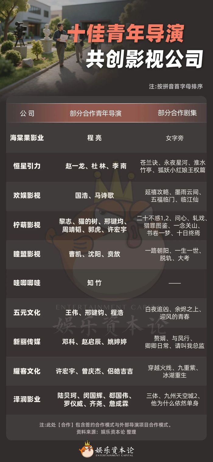 此次娱乐资本论特别梳理出十家正在与青年导演深度合作的影视公司,并且与其中部分头部影视公司、青年导演进行了对话。