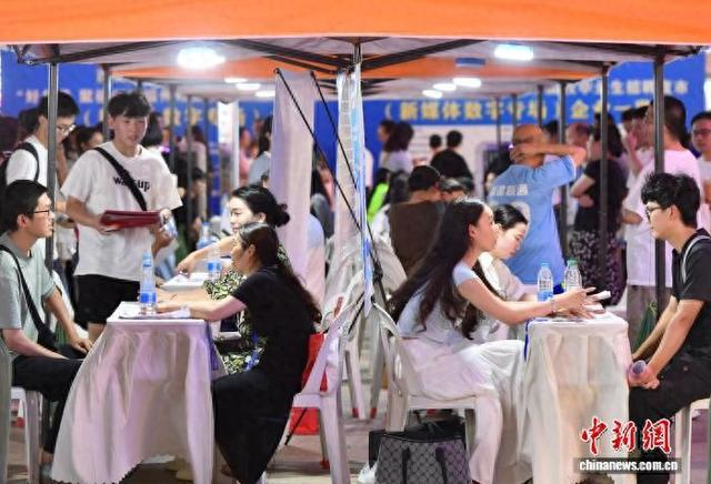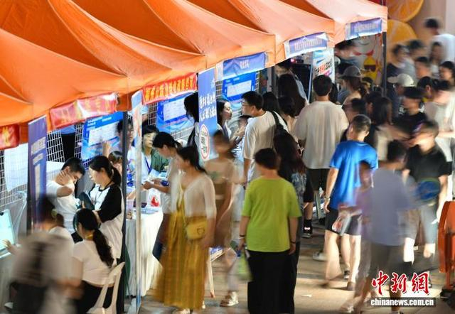 7月18日晚,百日千万招聘专项行动——“好年华聚福州”福州市高校毕业生招聘夜市举行,吸引众多求职者前来应聘。中新社记者 张斌 摄