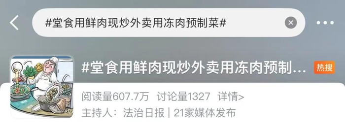 近日,“堂食用鲜肉现炒外卖用冻肉预制菜”相关话题登上热搜,引发广泛关注。
