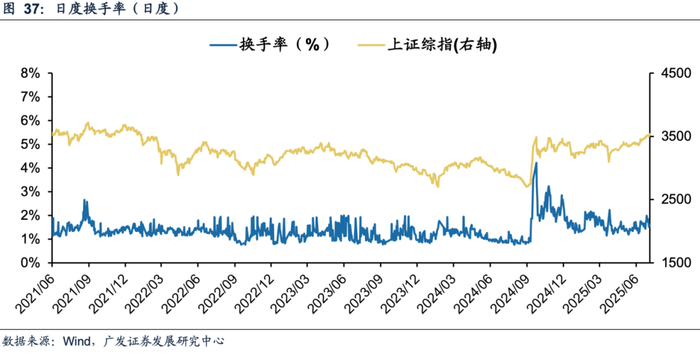 (2)日度换手率:本周日度换手率均值为1.65%,前一周为1.72%,本周换手微幅回落,交易情绪仍活跃。