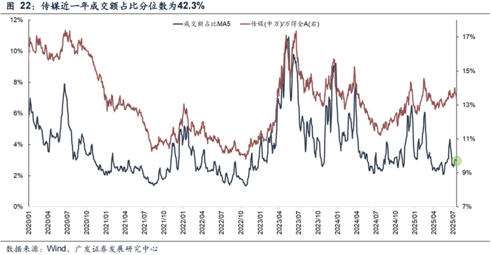 (八)传媒:本周近一年拥挤度分位数为:42.3%,环比减少7.4百分点。
