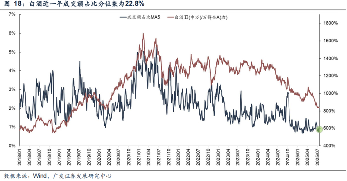 (四)白酒:本周近一年拥挤度分位数为:22.8%,环比减少1.6百分点;