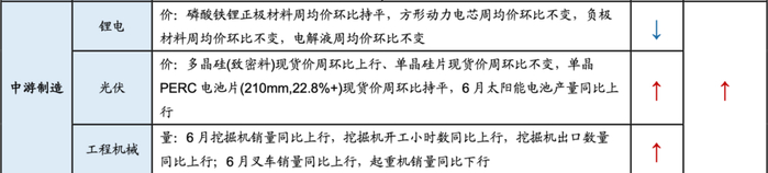 锂电方面,截至7月18日,正极磷酸铁锂周均价3.05万元/吨,周环比上行,三元6系周均12.62万元/吨,周环比下行。负极材料周均价3.886万元/吨,周环比持平。光伏方面,截至7月16日,多晶硅(致密料)现货周均价37.00元/千克,周环比上行,单晶PERC电池片(182mm,22.8%+)现货周均价0.29元/瓦,周环比持平。
