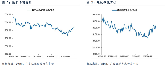 截至7月18日,铁矿石现货价为778.00元/吨,周环比上行,截至7月17日,螺纹钢(HRB400,20mm)价格为3230.00元/吨,周环比上行。截至7月11日,高炉开工率83.13%,周环比下行。