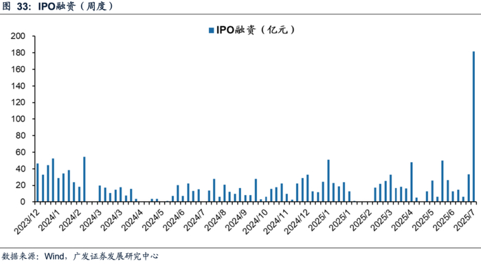(1)IPO融资: 本周IPO规模为181.71亿元,前一周IPO规模为33.37亿元,IPO融资较上周增加33.37亿元,截止本周五,7月IPO上市公司共计4家。