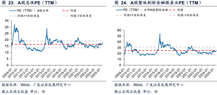 其中,A股总体PE(TTM)从上周17.80倍上升到本周17.97倍,PB(LF)从上周1.65倍上升到本周1.67倍;A股整体剔除金融PE(TTM)从上周25.19倍上升到本周25.60倍,PB(LF)从上周2.19倍上升到本周2.23倍。