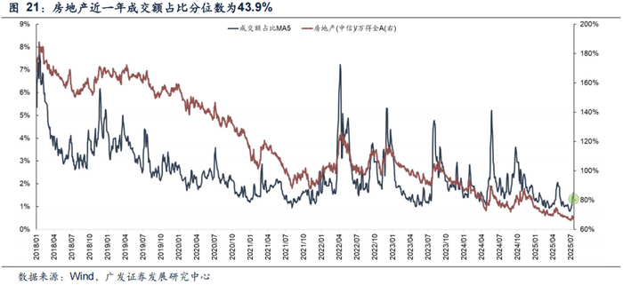 (七)房地产:本周近一年拥挤度分位数为:43.9%,环比减少3.8%;