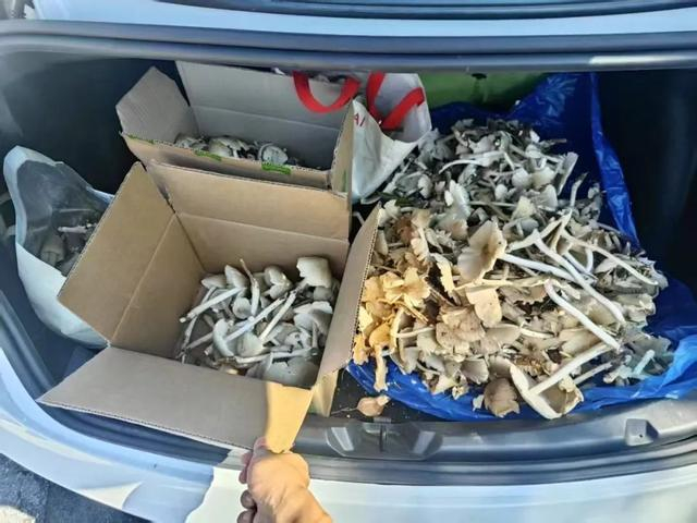 她一个人就挖了整整一后备箱的鸡枞菌,
