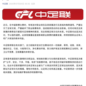 中足联还呼吁全体足球从业者与广大球迷,共同捍卫足球运动的纯粹,坚决清除玷污足球文化的毒瘤,理性对待胜负,以足球之名传递正能量。中足联将进一步完善相关措施,更好地维护赛场秩序和联赛环境。