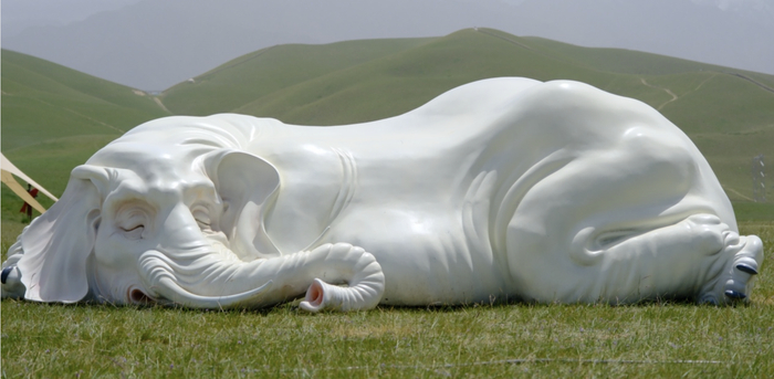 艺术家邱启敬带来四十多件由《山海经》古文献创作而来的大型雕塑作品。在昆仑景区的中心广场,呈现了五件雕塑作品,分别是《山海经》中记载的并封、青龙、白虎、朱雀、玄武。