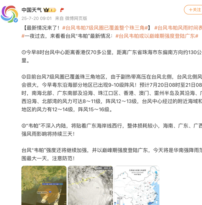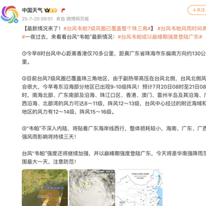 ③“韦帕”不深入内陆,将贴着广东海岸线西行,整体损耗较小,海南、广东、广西强风雨影响将持续三天!