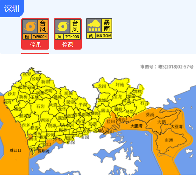 预计未来6小时“韦帕”将继续向偏西方向移动,强度维持台风级或加强到强台风级,今日上午在深圳南部100公里左右近距离掠过。目前深圳东部沿海、高地和深汕部分站记录到8-10级阵风,预计随着台风靠近,今天上午风力进一步增大。
