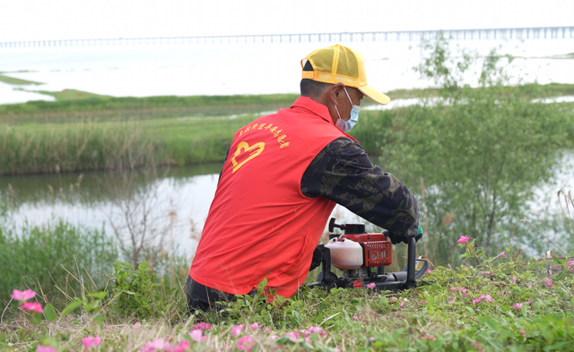 这支队伍以“一个流动喇叭、一副红袖章、一面小红旗、一只哨子、一块胸牌”为标配,每日沿湖开展巡查。建立起定期巡查机制,发现问题现场整改。蓝色向阳志愿者每日巡河发现的环境问题,由专人整理后会定时推送到人居环境整治微信群,由项目负责人领办,逐步营造“党员带头干、群众跟着干、全村齐心干”的浓厚志愿服务氛围。2023年,这支队伍升级为专项保洁服务队,承接石臼湖溧水区段绿化养护工程。通过春季修剪、防治害虫、绿地养护等数十个项目,让石臼湖畔重现“水清、岸绿、生态优”的美景。