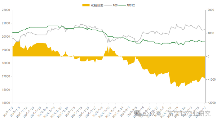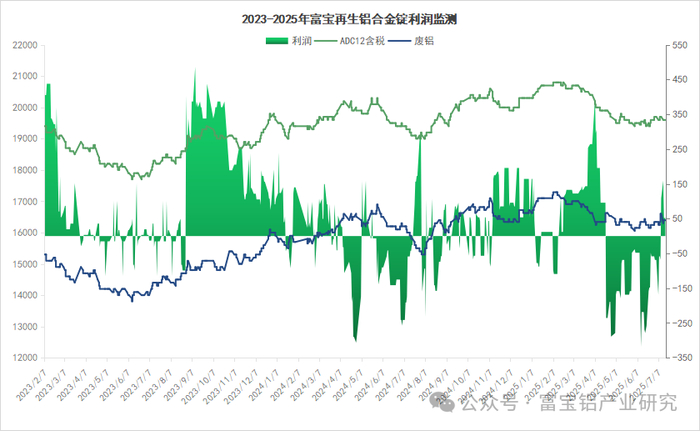据富宝有色数据测算,截止2025年7月17日,华东地区ADC12成本为19164.7元/吨,相较2025年7月10日成本值持平;华南地区ADC12成本为20187.2元/吨,较2025年7月10日成本值下降114.9元/吨。