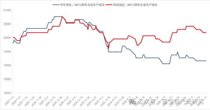 2、华东及华南地区ADC12生产成本