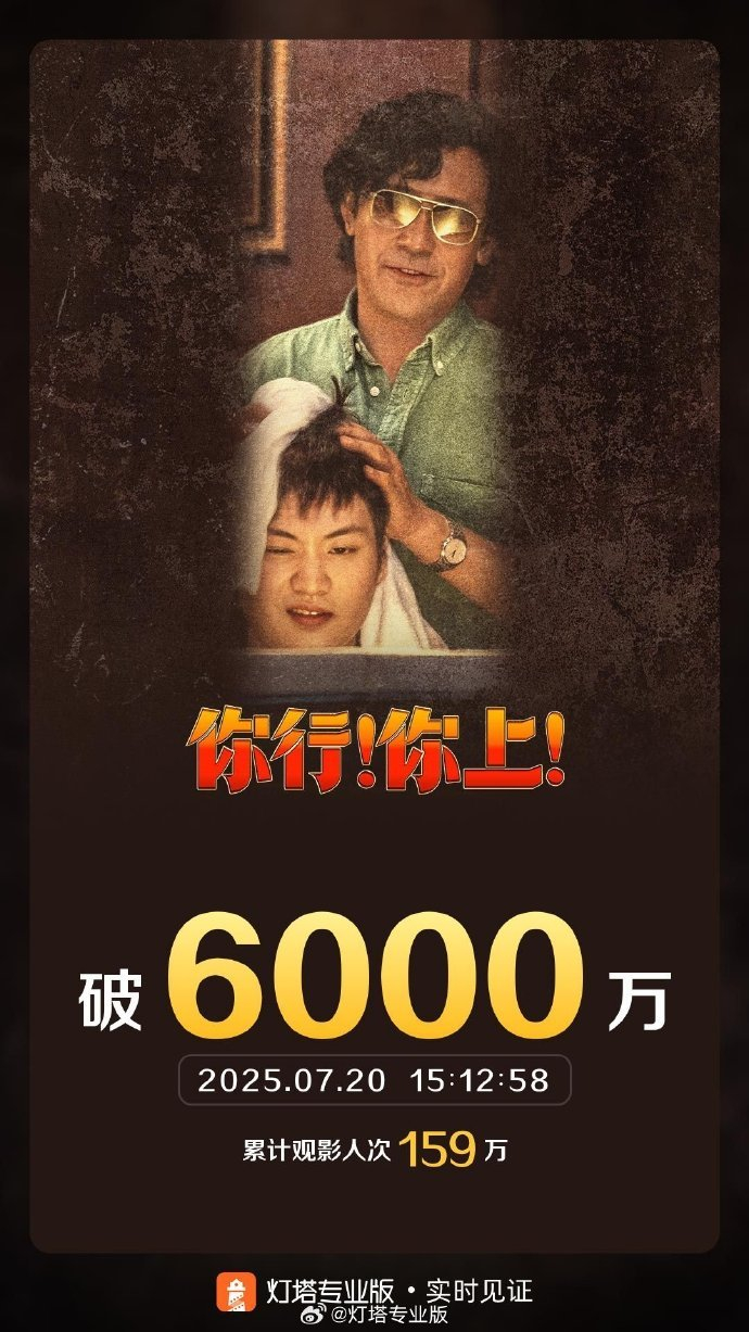 电影《你行!你上!》票房破6000万 界面新闻 界面新闻官方账号 2025.07.2015:21 关注 据灯塔专业版实时数据,截至7月20日15时12分,影片《你行!你上!》票房突破6000万元。