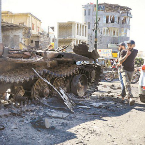 苏韦达省街头的军用车辆残骸 图IC