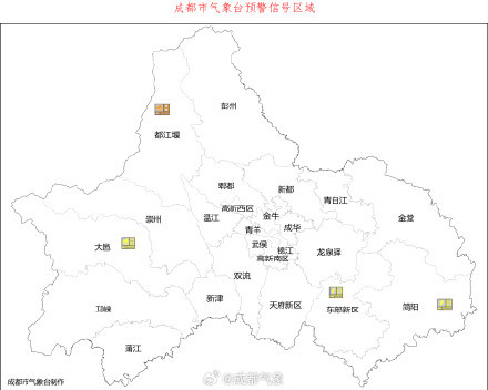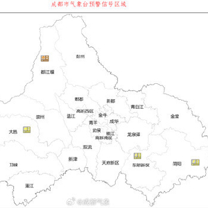 目前大邑已发布暴雨黄色预警信号,都江堰已发布暴雨橙色预警信号,简阳已发布雷电黄色预警信号,其余各区(市)县将及时发布预警信号。