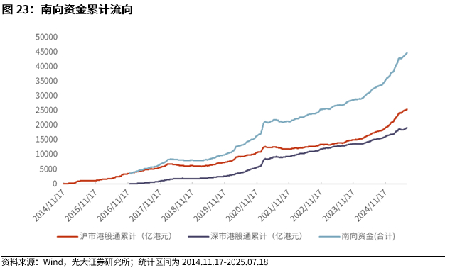 本周港股通交易区间为2025年7月14日-2025年7月18日,南向资金净流入214.56亿港元,其中沪市港股通净流入116.58亿港元,深市港股通净流入97.98亿港元。