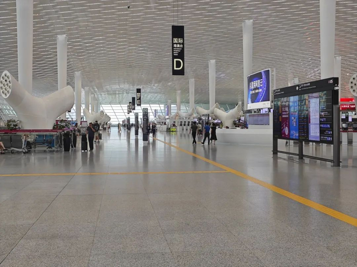 根据台风动态和影响评估,为确保运行安全,各航司昨日对今日上午到下午的航班计划进行了较大幅度调整,提前取消了今日深圳方向进出港航班800余架次,并将调整安排及时通知旅客。今天上午,机场无进出港航班执行,来机场的旅客也并不多。航站楼等处秩序井然,无旅客滞留,台风影响期间机场运行平稳有序。