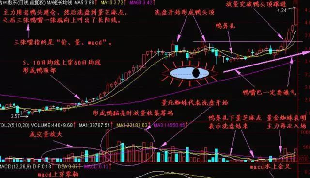 (3)形成老鸭头之后,股票价格放量突破鸭头部的时候可以买入。