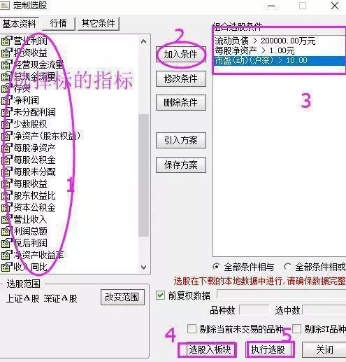 第六步:根据自选的牛股标准条件筛选