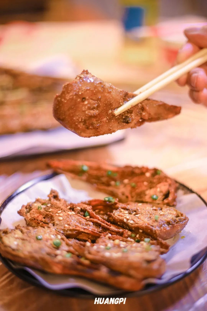 「羊肉串」肥瘦相间,烤到油脂冒泡;「鳝鱼串」处理得干净,炭火烤出的焦香盖过了河鲜的腥;连「韭菜煎饺」都藏着巧思,皮薄得能看见里面的翠绿,咬开时汤汁会烫嘴,却忍不住再咬第二口。
