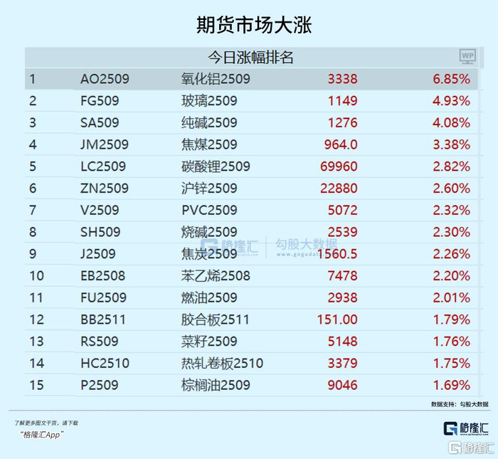 在期货市场,同时夜盘氧化铝、碳酸锂、玻璃、纯碱、焦煤、PVC等板块的集体大涨。