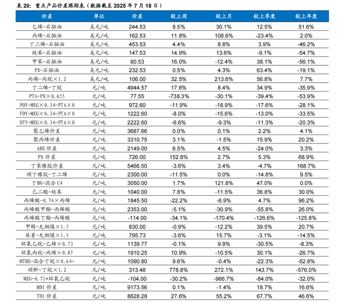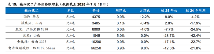 根据Wind,2025年7月18日顺酐价格为5550元/吨,环比7月11日下降50元/吨;据卓创资讯,2025年7月18日丁酮价格为8083元/吨,环比7月11日下降167元/吨。