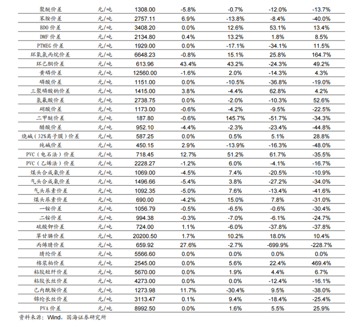 2)景气度提升。铬盐(振华股份)、磷矿石(芭田股份、云天化、川恒股份)、轮胎设备(软控股份)、制冷剂(巨化股份、东岳集团、三美股份、永和股份)、民爆(广东宏大、易普力、江南化工、高争民爆、雪峰科技等)、涤纶长丝(桐昆股份、新凤鸣、恒逸石化)、磷矿石(云天化、川恒股份、芭田股份)、农药(扬农化工、润丰股份、利民股份、广信股份、利尔化学)、芳烃(恒力石化、荣盛石化、东方盛虹)、萤石(金石资源)、粘胶短纤(三友化工)、不溶性硫磺(阳谷华泰)、维生素(新和成、兄弟科技、浙江医药、花园生物、安迪苏)、合盛硅业、锦纶(聚合顺、台华新材、华鼎股份)等。