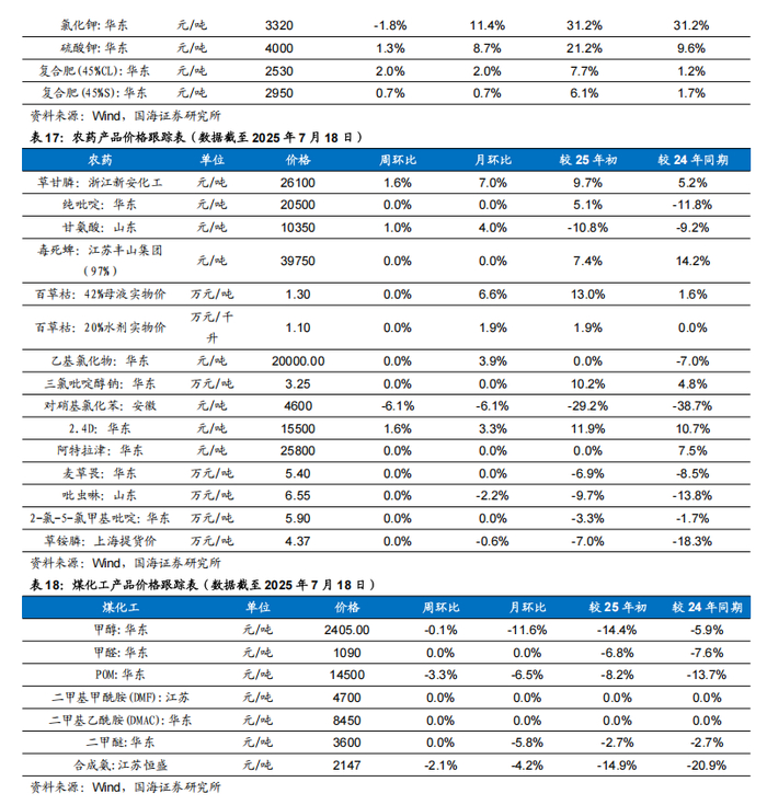 国海化工|化工周报:反内卷有望带动化工景气反转