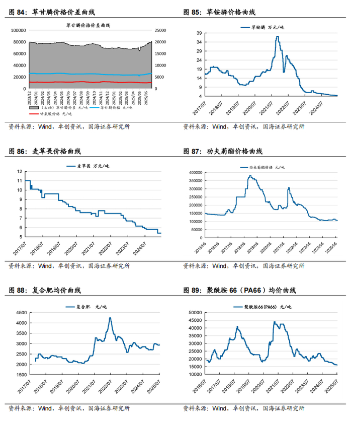 据Wind和百川盈孚,2025年7月18日功夫菊酯原药价格为10.7万元/吨,较7月11日持平;联苯菊酯原药价格为12.8万元/吨,较7月11日下降0.1万元/吨;草甘膦原药价格为2.61万元/吨,较7月11日上涨0.04万元/吨。