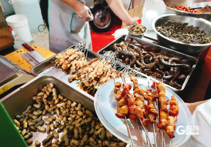 从现场来看,摊主大多明码标价,美食类菜品价格亲民,在景点节会一类的消费场景中相对较低。摊主现场烹饪,食客立等可取。食材新鲜程度、操作环境卫生,一目了然。