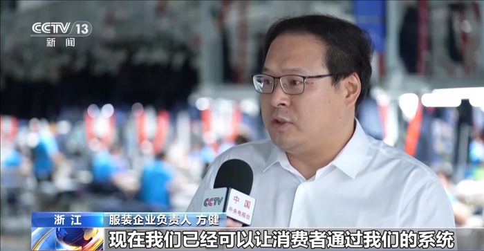 服装企业负责人 方健:现在我们已经可以让消费者通过我们的系统清晰地知道他所定制的这件衣服,在某一个时间,在某个产线上,有某个工人帮他服务,帮他定制。