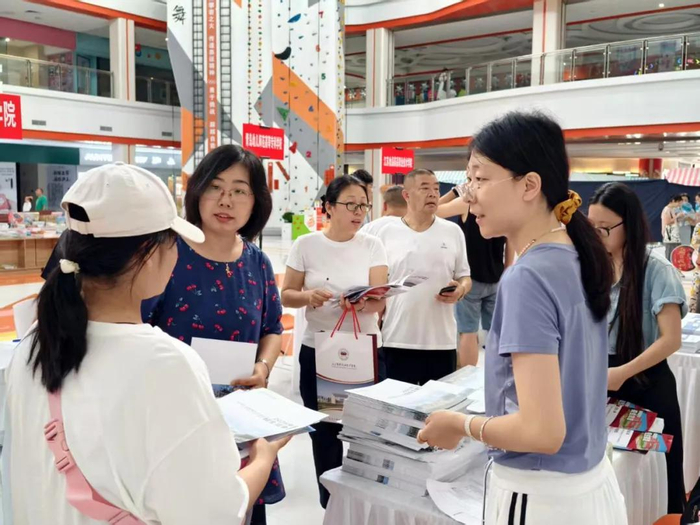 7月20日上午,半岛都市报社主办的2025年半岛高招会高职(专科)场在青岛顺和购物中心举办。众多专科院校的招生老师来到现场,与高考考生和家长面对面交流志愿填报。半岛都市报已经连续16年举办高招会,今年的半岛高招会再次得到了广大考生、家长和参展院校的认可。