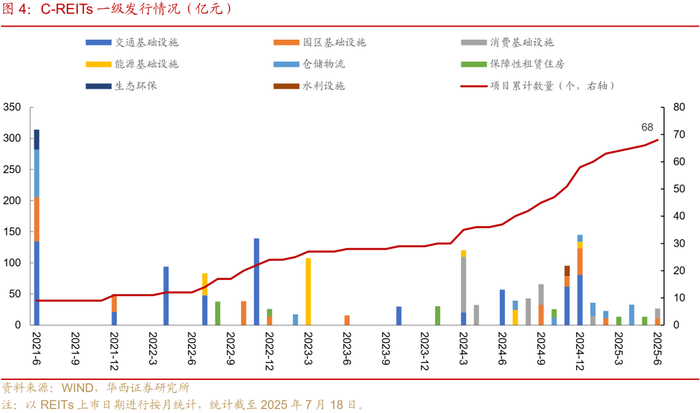 7月共有5个项目解禁。2024年随着高股息策略占优,春节后REITs整体迎来一波修复行情,且由于百货商场、购物中心等消费资产类型的引入,2024年以来REITs申报、发行、上市数量明显加快,截至2024年末已有29个项目上市,其中市场化战略配售的锁定期普遍为12个月,2025下半年至2026上半年陆续迎来解禁小高峰。2025年7月解禁的项目有5个,分别是华夏特变电工新能源(2025/7/2)、国金中国铁建高速(2025/7/8)、华夏深国际仓储物流(2025/7/9)、中信建投明阳智能新能源(2025/7/23)、鹏华深圳能源(2025/7/26)。之前担心止盈对价格形成冲击,现在通过大宗交易方式对价格的影响有待观察,近期市场交投情绪有所回落,需关注近期解禁项目带来的交易压力。