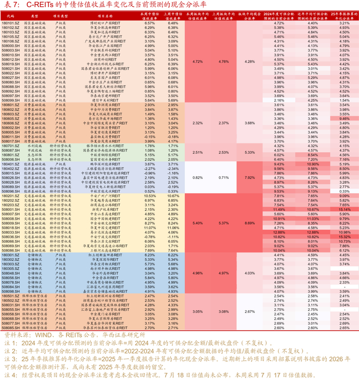本周七大REITs板块涨跌不一,能源设施跌幅最大达0.89%,产业园区、消费设施表现较好。能源设施板块的7只REITs普遍下跌1-2%,其中:中信建投明阳智能新能源(-2.15%)、华夏特变电工新能源(-2.04%)跌幅靠前,可能受部分战配份额分别(将)于2025年7月2日、7月23日解除限售影响,对二级市场价格造成了一定的交易压力。中航京能光伏下跌1.99%,可能受榆林光伏项目上网电量、结算电量下降的影响。2025年第2季度,榆林光伏项目上网电量、结算电量分别同比下降43.74%和43.67%,主要是受自然环境变化、电力外送压力和供需不平衡、外部电网检修等因素扰动。