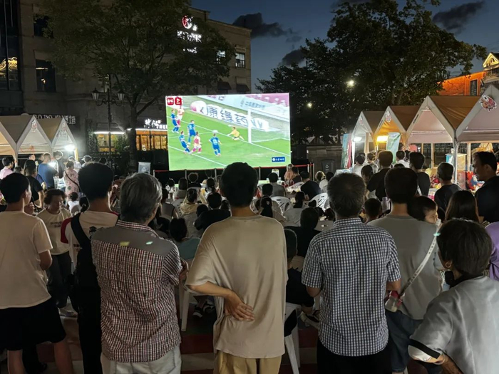 美食飘香、音乐助阵、文创妙趣,球迷们在加油呐喊与欢乐互动中沉浸式体验赛事魅力。赛场激情也点燃了“夜间经济”,吸引超2000名市民参与,截至发稿前已促进街区消费超10万元,充分展现了“体育+”模式对夜间经济的强劲带动作用。