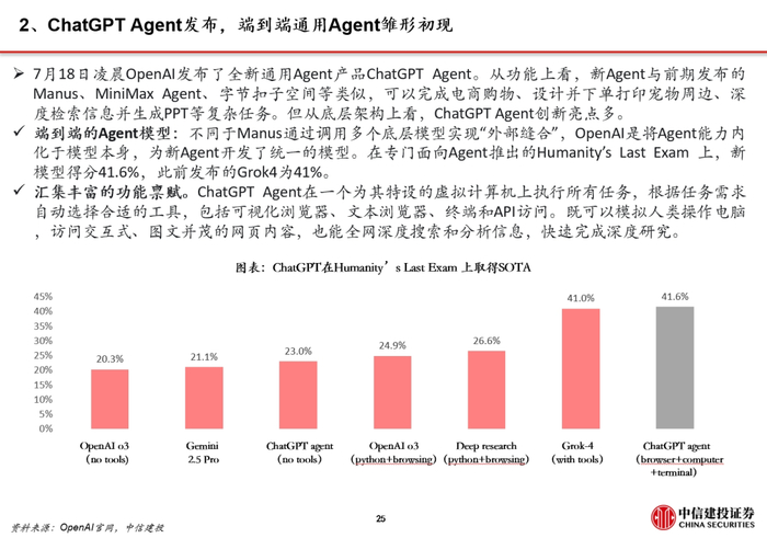 OpenAI发布ChatGPT Agent,端到端通用Agent雏形初现。