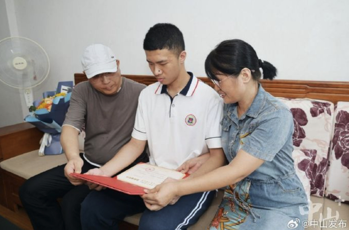 7月15日,家住西区街道的中山侨中毕业生曹卓轩,收到了中国人民解放军网络空间部队信息工程大学的本科录取通知书,也是该大学的广东地区首封录取通知书。