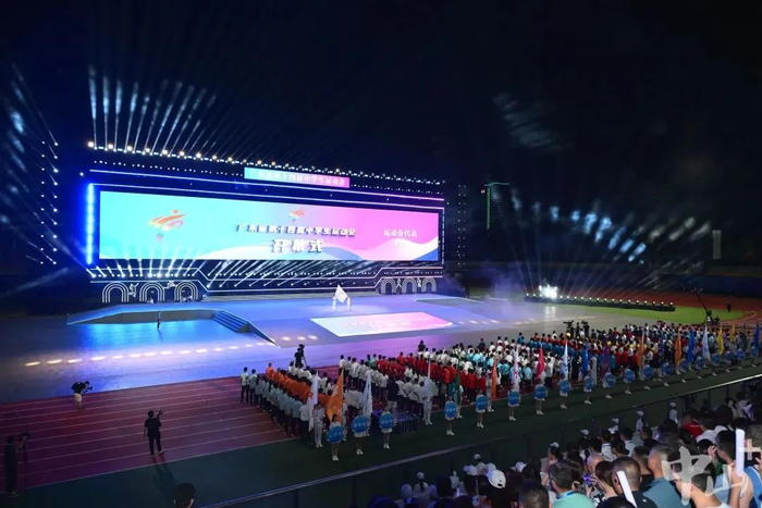 7月15日晚,广东省第十四届中学生运动会开幕式在中山市兴中体育场盛大启幕。全省21个地市的青少年运动员齐聚中山,围绕12个大项展开激烈角逐。