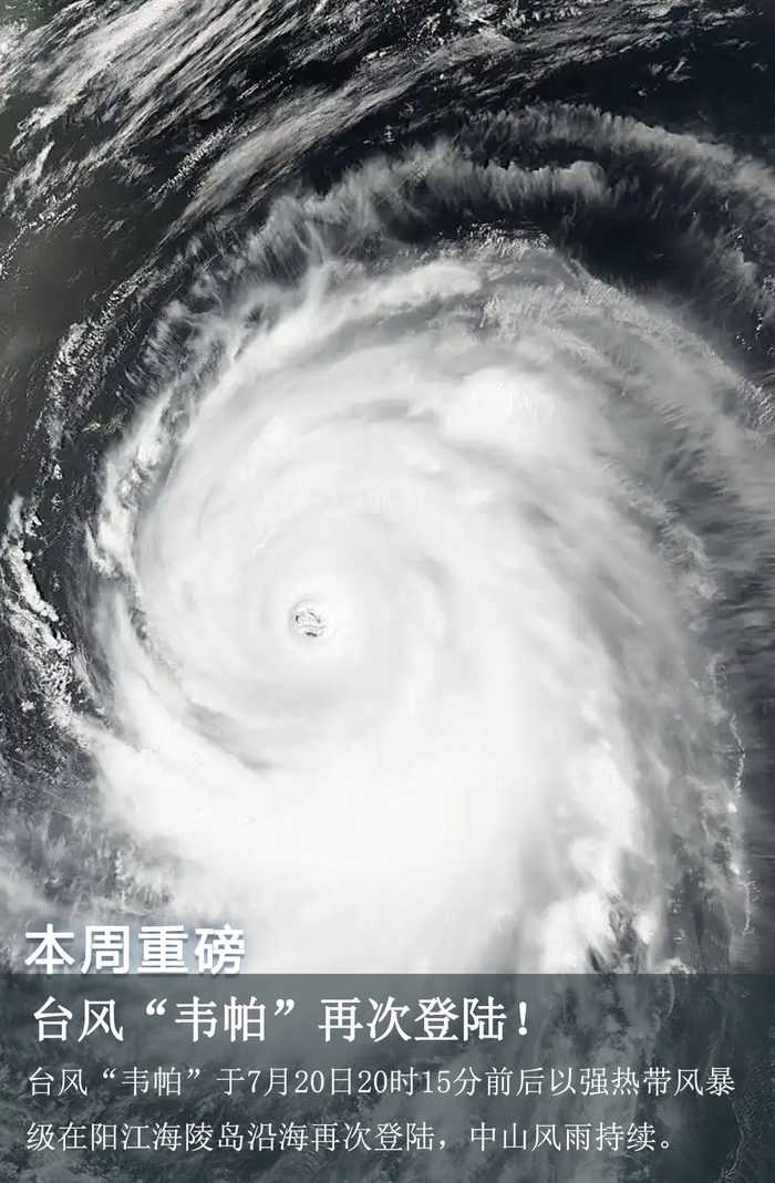 今年第6号台风“韦帕”于7月20月20时15分前后以强热带风暴级在阳江海陵岛沿海再次登陆,预计今晚到明天我市仍有大雨,局部暴雨,累积雨量40-70毫米,风力进一步减弱;目前全市台风蓝色、暴雨黄色预警信号仍在生效中,请继续做好防御。